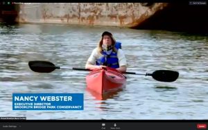 The live Ball has always focused on raising funds for, and awareness of, the Conservancy’s role in Brooklyn Bridge Park for both the local and wider NYC community. So, including some elements live (and simulive) from within the park was a must! We sent our masked and safely distant video crew to the park to capture moments only the Park could offer: our host in a kayak, a meaningful lantern prayer for the East River, “Man on the Street” style interviews with masked park goers, and other Park personalities. Blended with celebrity-provided cameos and a performance by Brooklyn musician Hamilton Leithauser, the meat of the presentation reflected and inflected the life of the Park.