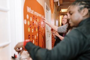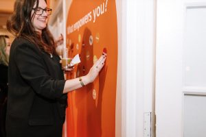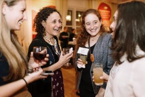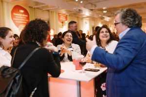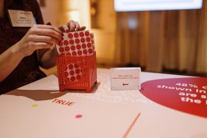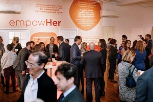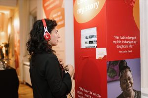 Knowing they wanted something more festive than a formal Gala, Sequence helped Her Justice carry out their event goals through a festive and celebratory cocktail party. They wanted to ensure guests had fun with countless opportunities to network while still being immersed in all the amazing work that Her Justice has done over the years. To achieve this, Sequence secured a trendy loft-style space in Manhattan that could act as their blank canvas. With the help of beautiful custom wall wraps, we helped them make impactful graphics calling out images, powerful stats, and heroic individuals, all who brought Her Justice’s mission to success. On the cocktail tables, we dispersed topic starters for people to use for mingling and dynamic facts about the organization on the bar to further the brand messaging. Audio booths lined a wall with emotional testimonies for guests to partake in, to really be drawn into the overall story of Her Justice.