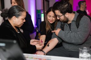 Guests enjoyed a glitter tattoo parlor featuring company-themed designs, a photo booth, and live music from a DJ set paired with an electric instrumentalist. A roaming mentalist captivated the crowd with mind-bending performances, while caricature artists added a playful touch, sketching personalized, whimsical portraits—creating a night filled with unforgettable moments.
