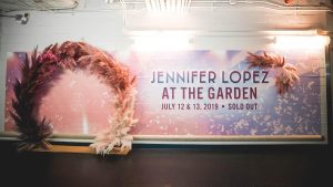 As soon as JLO arrived backstage at MSG she was greeted with one hundred 3 ft branded purple and pink balloons to match her “It’s My Party Tour” brand. The balloon path led her to a faux subway scene with authentic decor and props that nostalgically brought her back to the “Jenny from The Block Tour”. She could not believe the thoughtful greeting and broke out into dance using the area as a backdrop for an insta post with her dancers. She continued to her dressing room where she walked by a 15 ft custom free-standing step and repeat with an arched ombre feather installation bringing her tour creative to life.