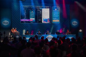 A key moment on the agenda was the Paywall Building Challenge, a live competition featuring five finalists from around the world racing to build a sample paywall as accurately and quickly as possible. Envisioned as an esports-meets-WWE-style showdown, the segment required a dramatic mainstage environment capable of supporting livestreaming, bold lighting effects, and cryo jets.